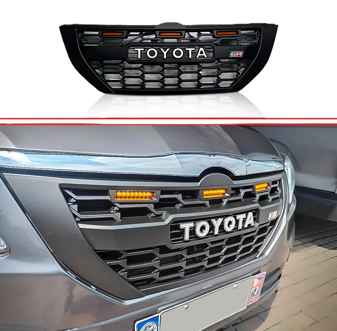 GR‑Sport design with optional amber LED light bars; direct replacement for the OE grille on Hycross.