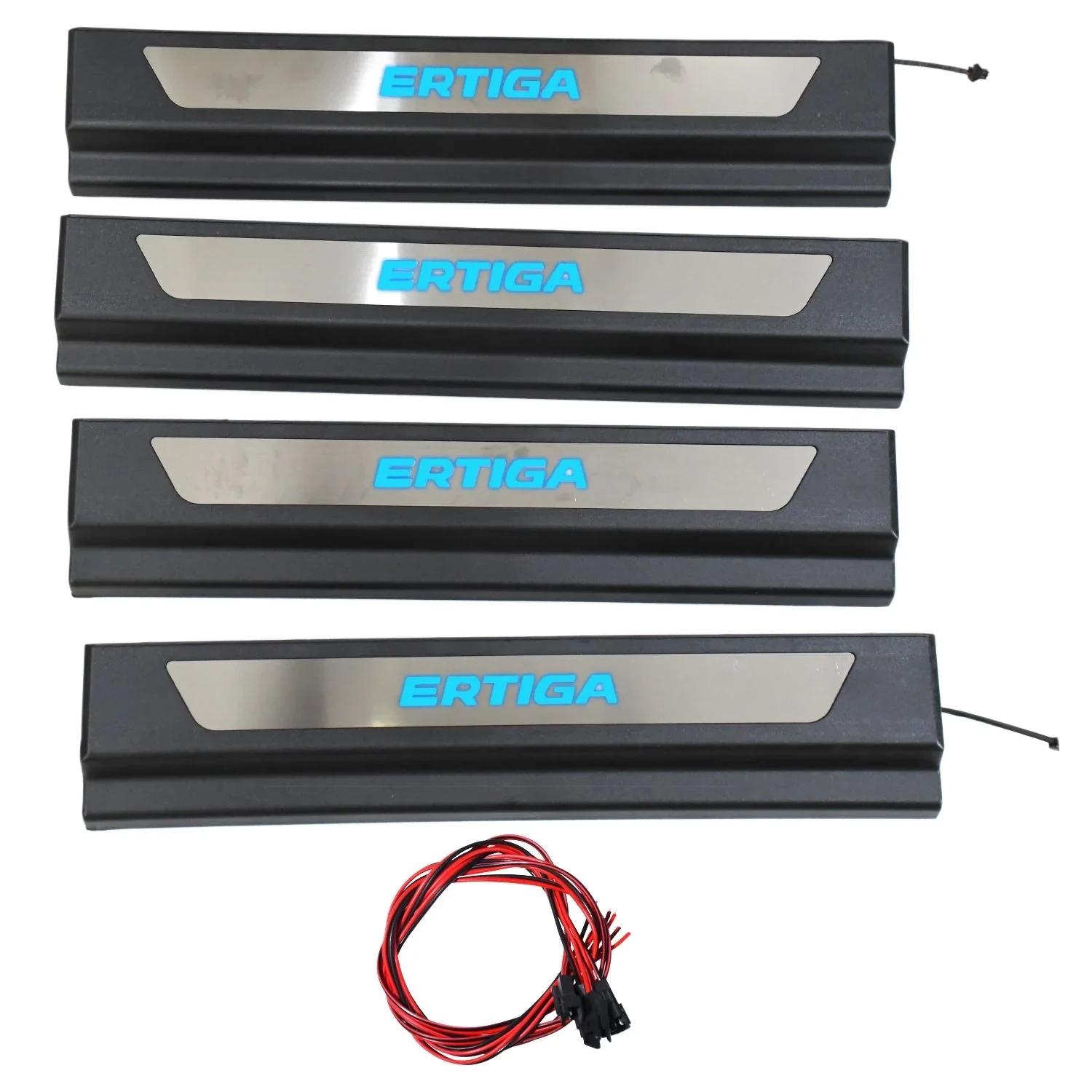 sill/scuff plates (front L/R, rear L/R) per set; LED kits include wiring leads.