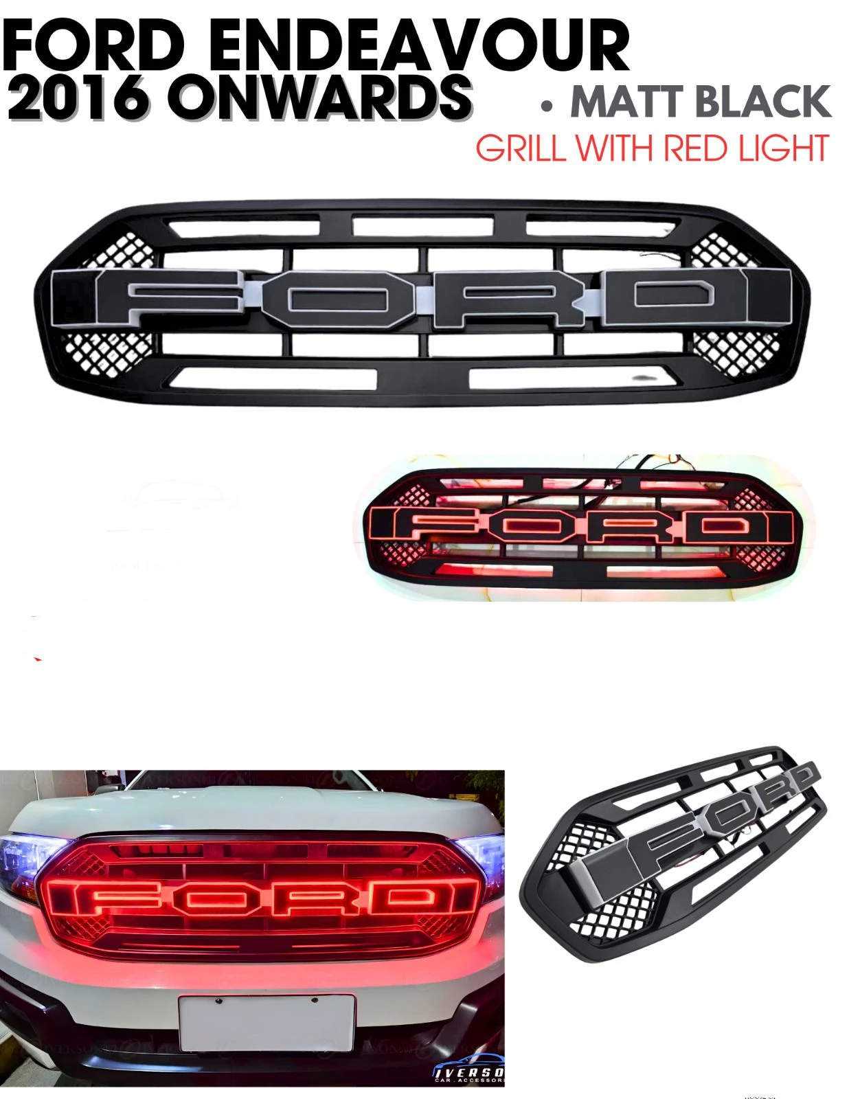 Direct‑fit: Vehicle‑specific grille for Ford Endeavour 2016‑on; uses factory clips/screws.