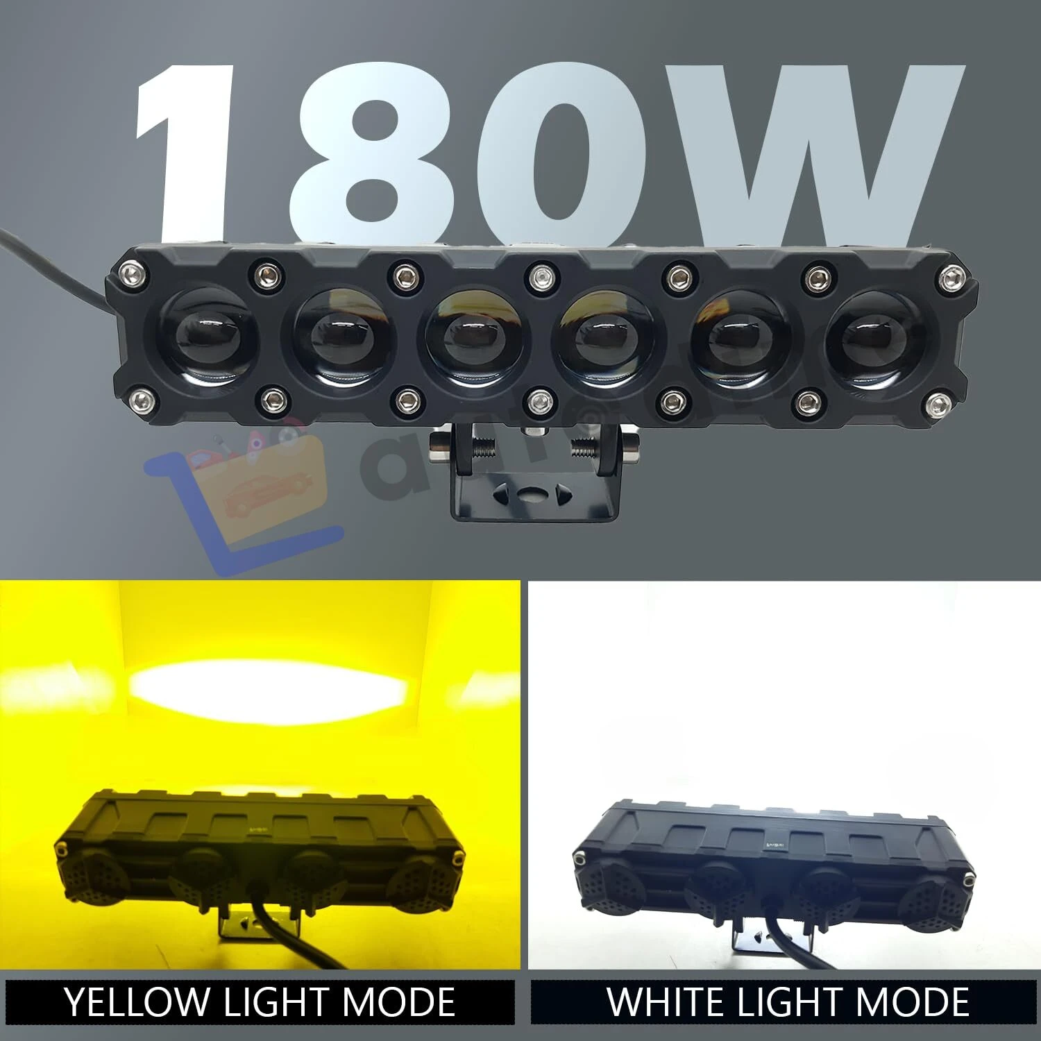 In the box: 2 × HJG 6‑Lens LED lights (90W each), adjustable mounting brackets