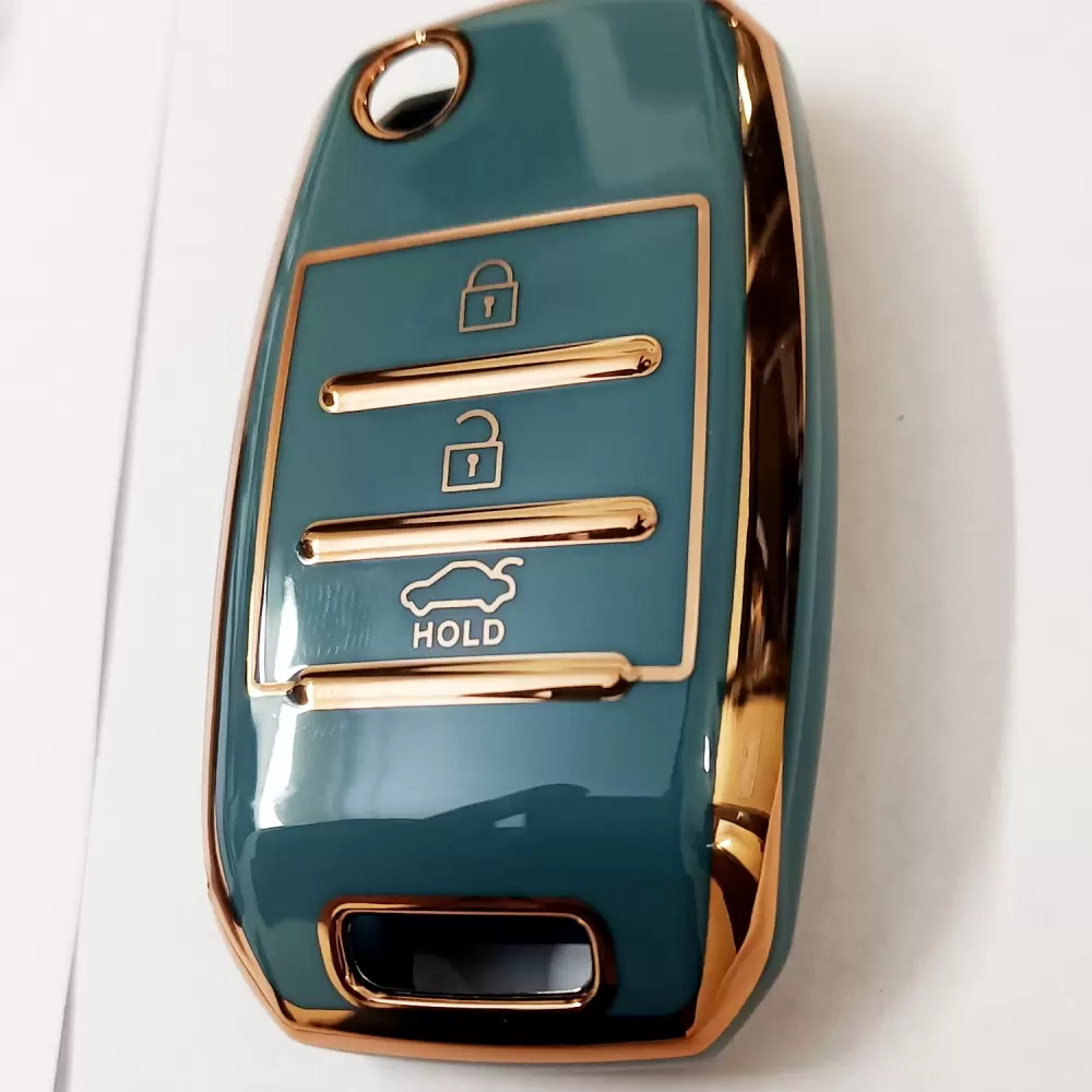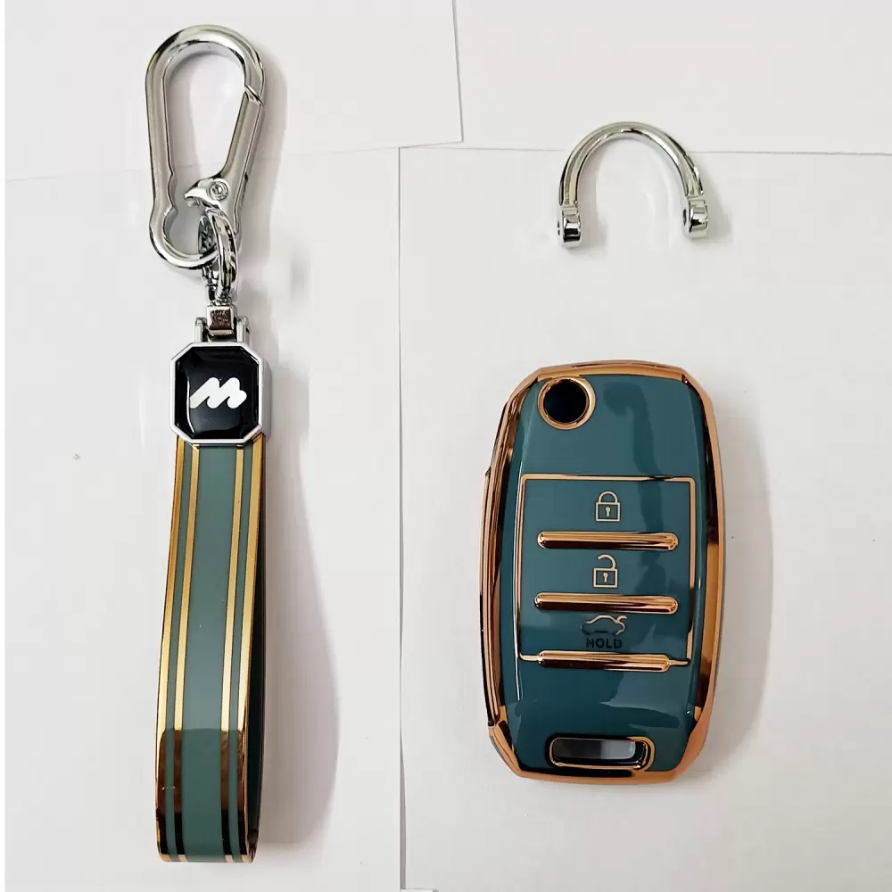 Mogato Premium Quality Soft TPU Leather Pattern Key Cover With Chain For Kia Car