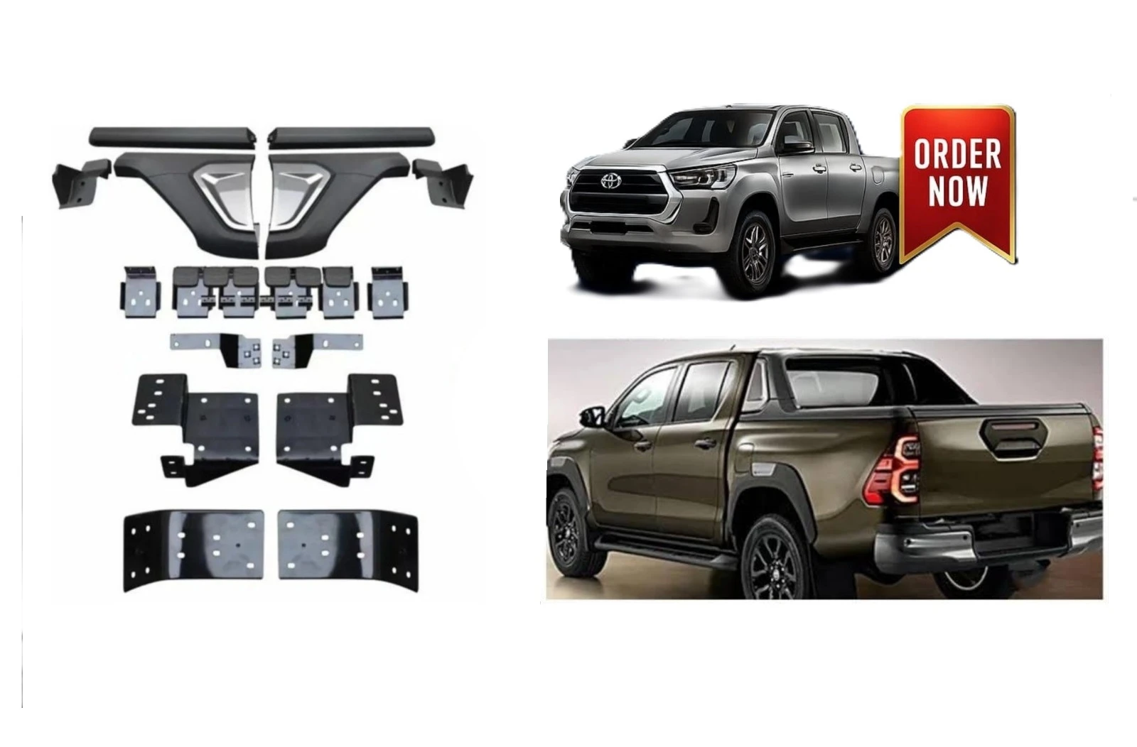 Vehicle‑specific kit for Toyota Hilux, designed to align with the cab and bed rails.
