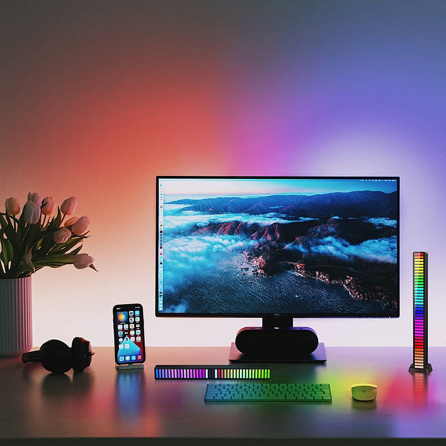 - Rhythm LED Light with 32-bit ARM Processor: Compared with traditional sound-controlled lights, this rgb light bar has 32 built-in dazzling light beads, with a music-specific MIC and a 32-bit ARM processor with a main frequency of 72M. Realize the dynamic embodiment of music and sound field, giving you a dynamic decorative beauty.