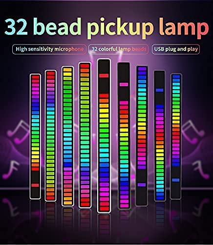 - Voice Activated Atmosphere Light with High-sensitivity Pickup MIC: Sound Control Music Rhythm Lamp built-in high-sensitivity pickup MIC, the complex rhythm can also keep up with the automatic display of the light block according to the rhythm.And Sound Activated Colorful Music Lamp with 32 light beads built-in 300mAh battery, can also be used outdoors, can be powered by power bank, computer, power supply, etc.